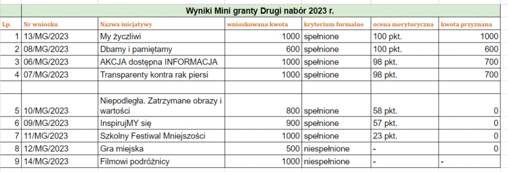 Wyniki II naboru Mini grantów na inicjatywy wolontariackie.